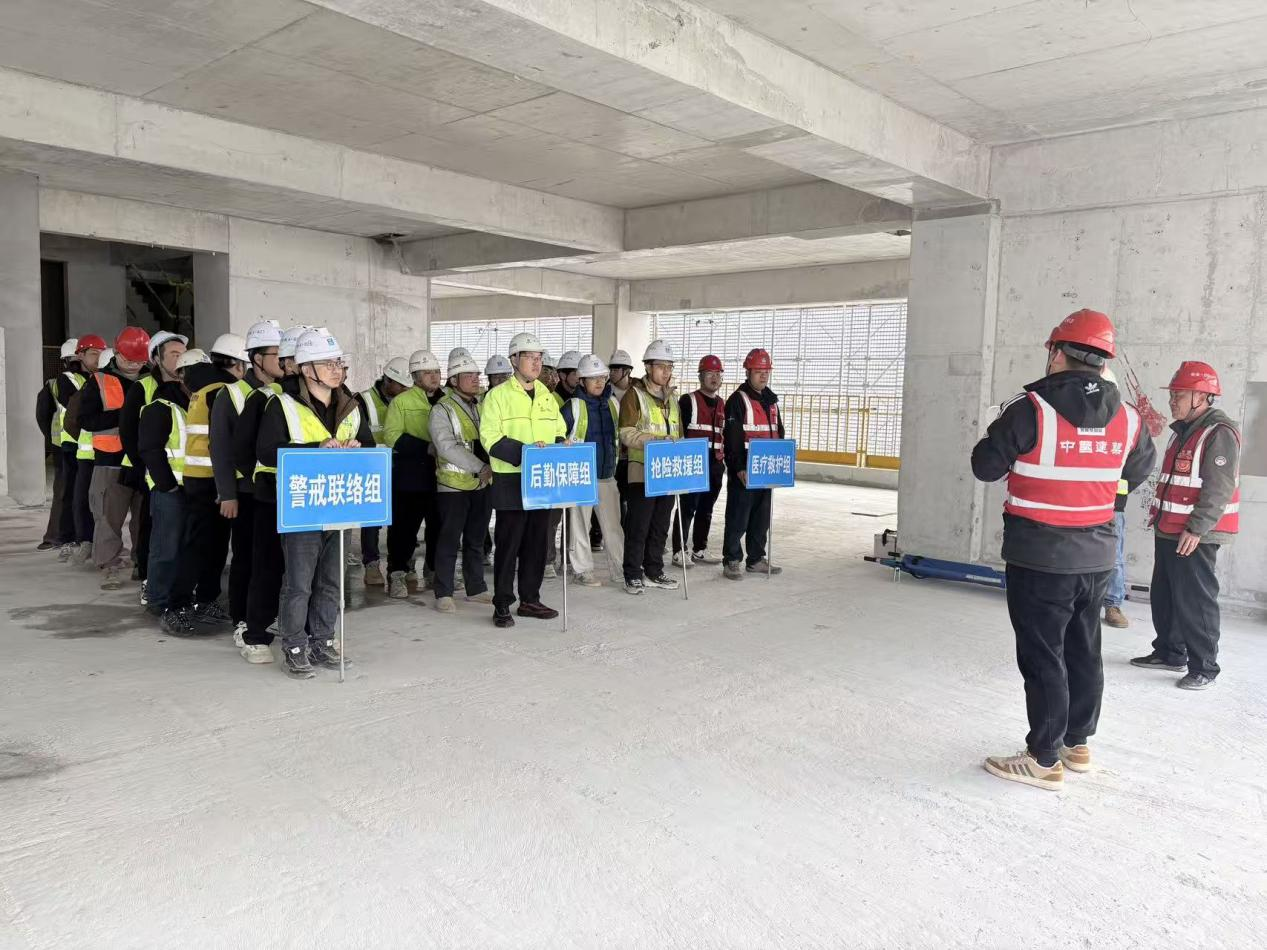 整个演练涵盖现场模拟施工人员高处作业时不慎坠落、现场抢险、伤员抢救、?;は殖〉然方凇O钅空攵员敬斡痹ぐ秆萘?,组建了抢险救援组、后勤保障组、医疗救护组、警戒联络组,各小组协同作战。