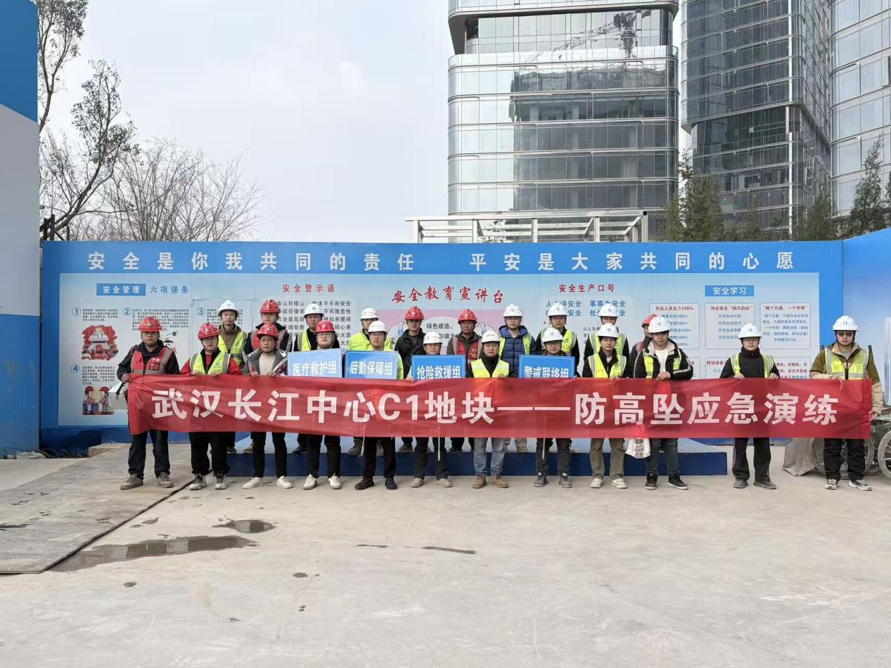 为进一步强化项目全体人员的防高坠安全意识,提升应对高空坠落事故的应急处置能力,3月5日,武汉长江中心C1地块针对高空坠落突发事故开展模拟演练。